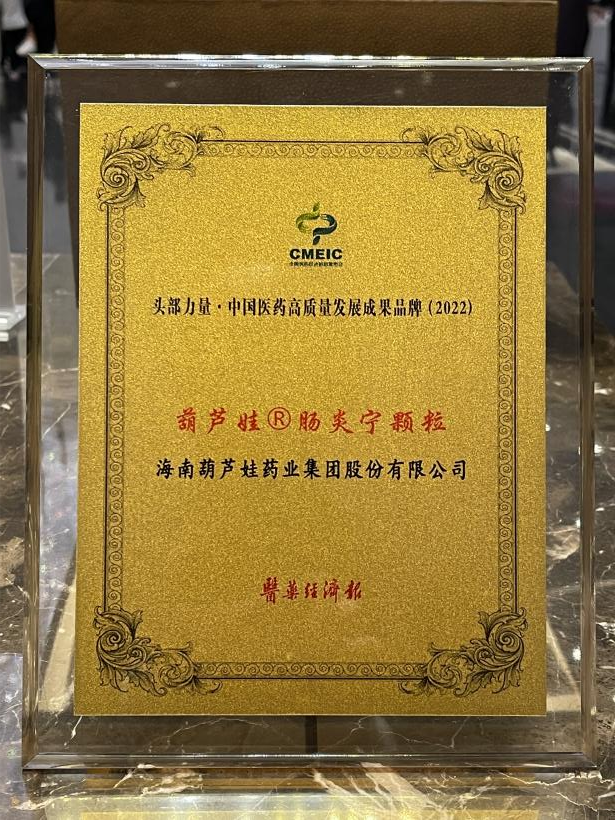 在本次发布会上,公司重点产品彩虹多多牌肠炎宁颗粒同时荣膺“头部力量·中国医药高质量发展成果品牌(2022)”。彩虹多多牌肠炎宁颗粒(2g),传承经典名方,临床广泛用于成人及儿童急慢性胃肠炎、腹泻等疾病的治疗,由于其杰出的临床价值,被纳入国家中医药管理局相关专家项目组制定的《中成药治疗小儿腹泻病临床应用指南》。